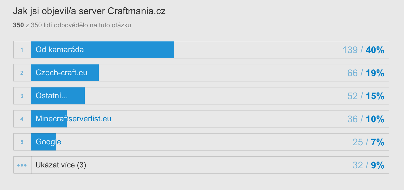 Celkově na dotazník odpovědlo 350 hráčů.